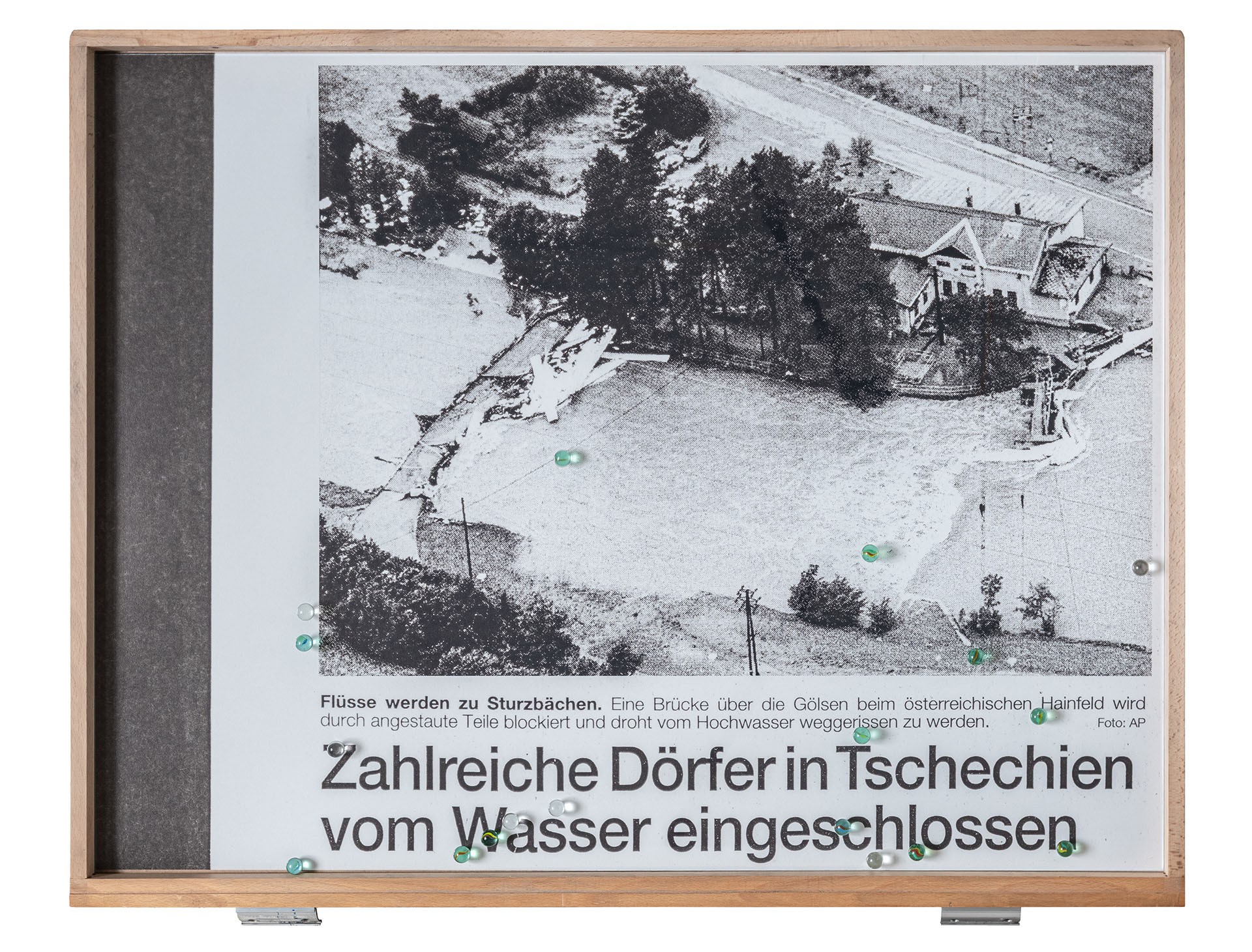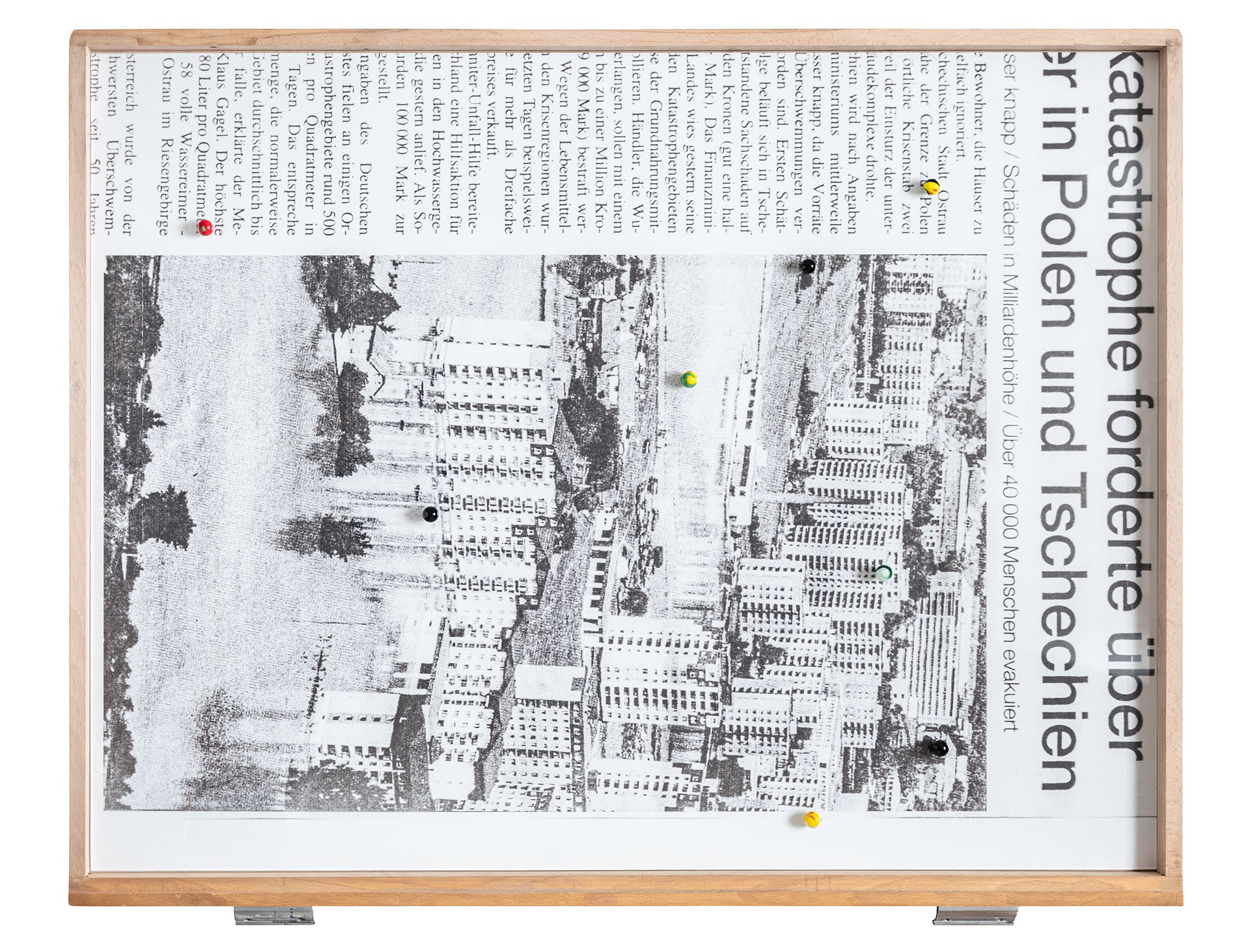 The photo series "murmeln des wassers" explores how the river motif that has been extensively documented and repeatedly reproduced in different medias can be reimagined beyond established visual frames. To do so, various representations of the Oder landscape are collected and brought together in an archival piece of furniture, where they are reinterpreted in a playful way.