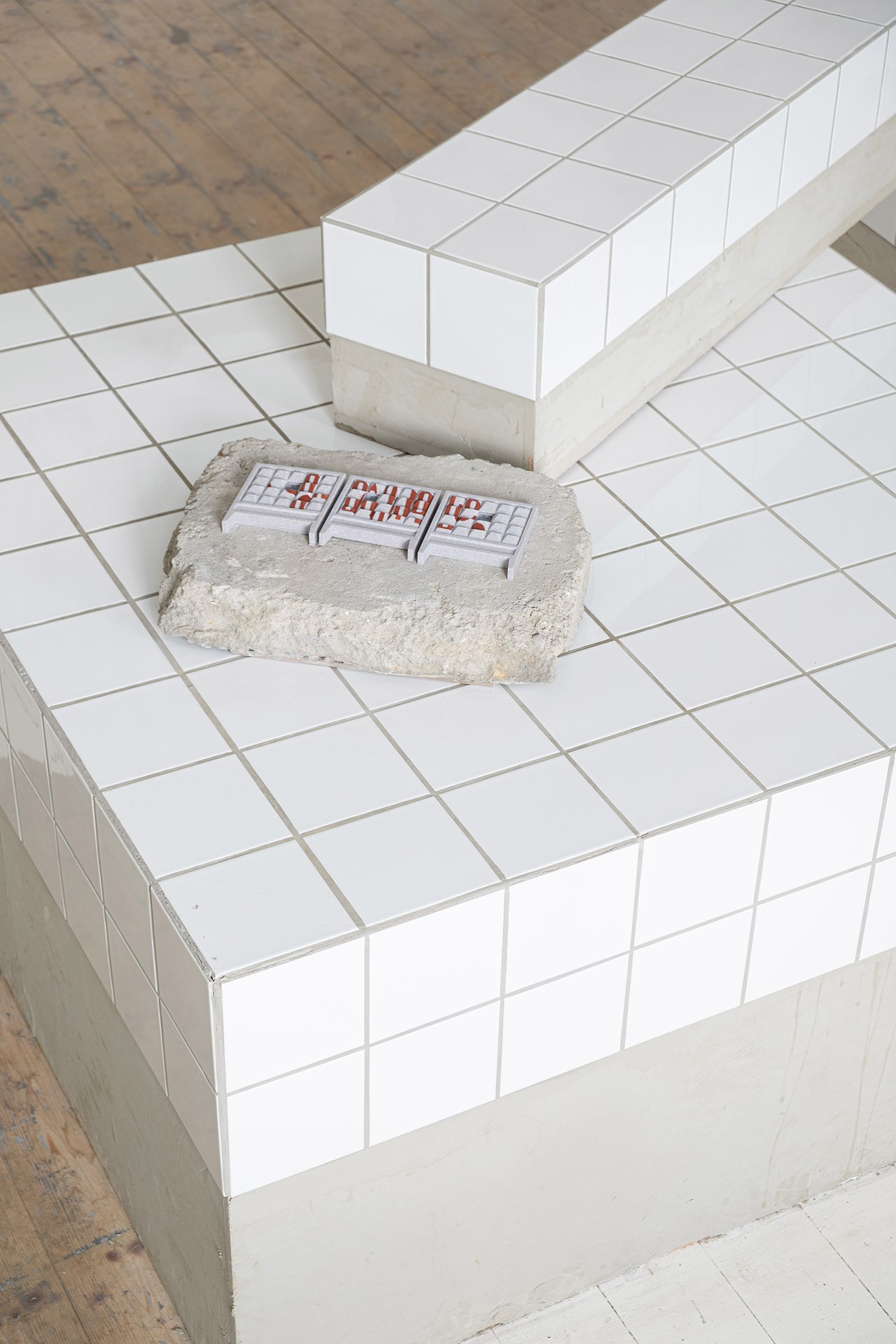 Sliding Puzzle POLUS, 3D print, PLA filament, acrylic, concrete, H: 13 cm W: 33 cm D: 1,5 cm, 2023
