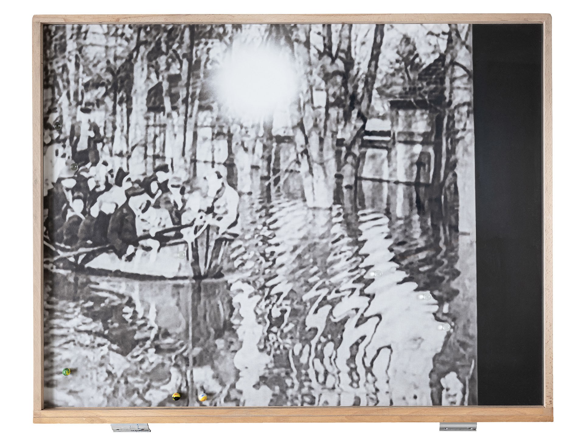 The photo series "murmeln des wassers" explores how the river motif that has been extensively documented and repeatedly reproduced in different medias can be reimagined beyond established visual frames. To do so, various representations of the Oder landscape are collected and brought together in an archival piece of furniture, where they are reinterpreted in a playful way.